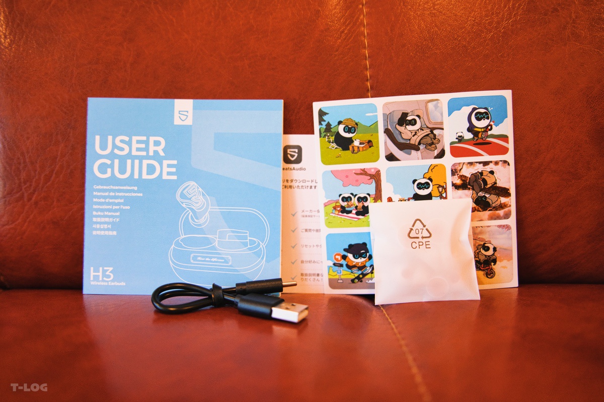付属品はイヤーピース、USBケーブル、ステッカー、説明書です。