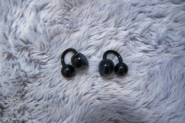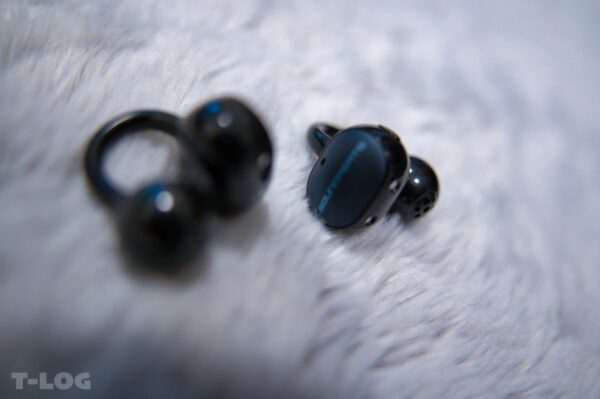 ブラックのマット仕上げ。中央のSOUNDPEATSロゴが控えめに輝いています。この“上品なミニマル感”は、ビジネスシーンにも合います。鞄から取り出したときに「おっ」と思わせる高級感があります。Clip1よりも好きです。